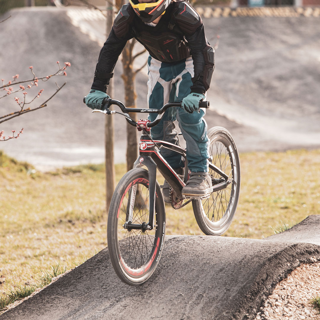 Il BMX TRACK è un circuito di circa 200 metri completamente asfaltato, veloce e sicuro. Una successione di salti, cunette e curve paraboliche dove poter esercitare la fluidità di guida e le tecniche più avanzate del BMX. Il circuito è un mezzo utilissimo per allenare capacità metaboliche generali, specifiche e tecniche di guida durante i periodi off-season delle discipline ciclistiche tradizionali.