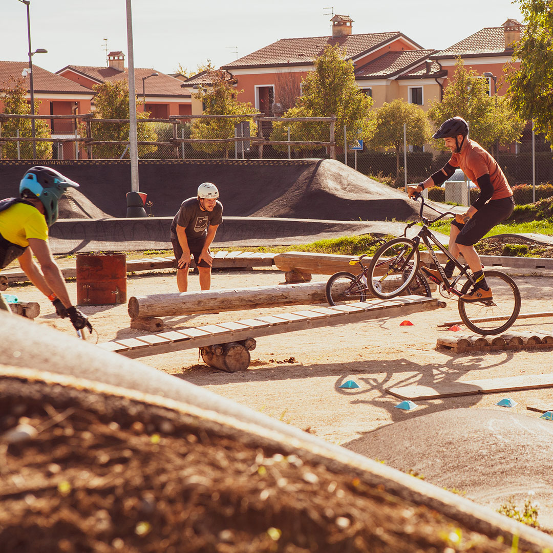 ll bikepark rappresenta la sintesi sapientemente progettata di BMX RACING, DIRT-JUMP e PUMPTRACK: una struttura dove costruire le abilità per una lunga carriera ciclistica. Un luogo dove, grazie al divertimento, allenare e specializzare coordinazione e consapevolezza di guida.
